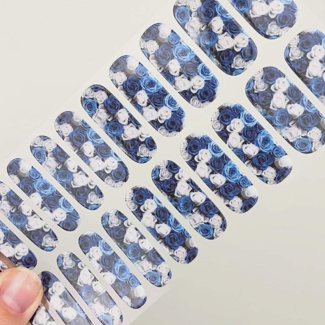„Twilight Rose“ ist Bestandteil der UV Gel Kollektion. Dieses wunderschöne Design zeigt zarte Rosen in Navy und Weiß. Diese atemberaubende Kreation sieht auf jedem Hautton wunderschön aus und passt zu nahezu jedem Anlass.
